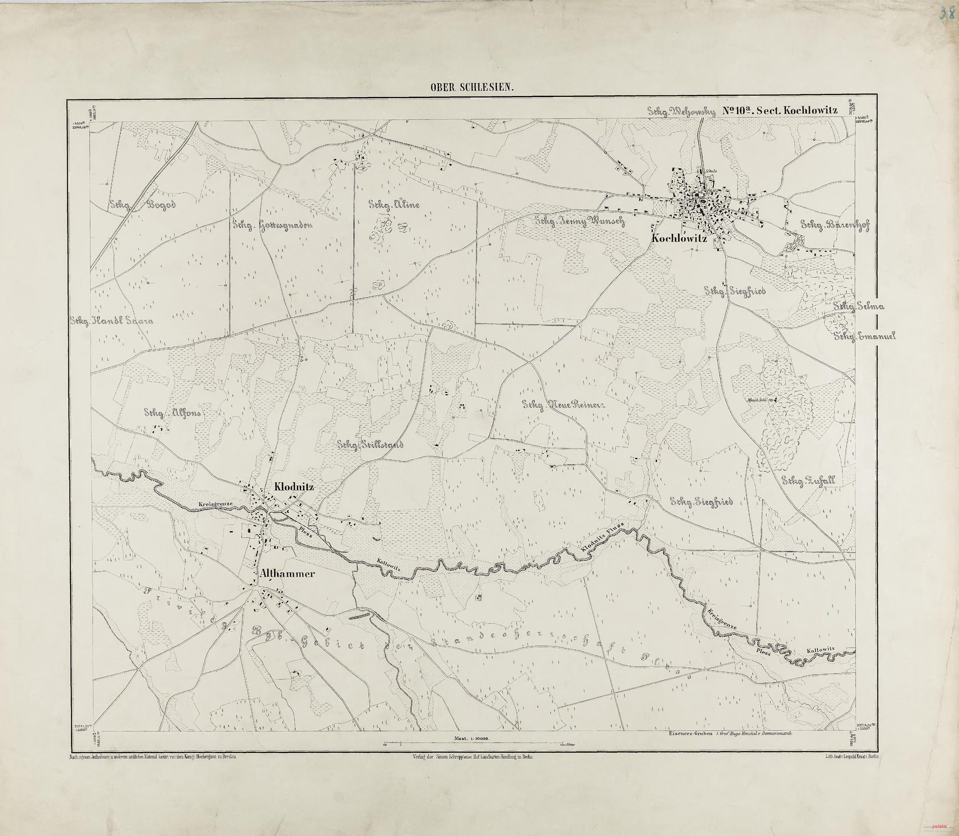 1880 , Mapa okolic Kochłowic i Starej Kuźni (Althammer). Tytuł publikacji grupowej: Specialkarte der Oberschlesischen Bergreviere unter Angabe der Lage der verliehenen Bergwerke.Skomentuj zdjęcie |