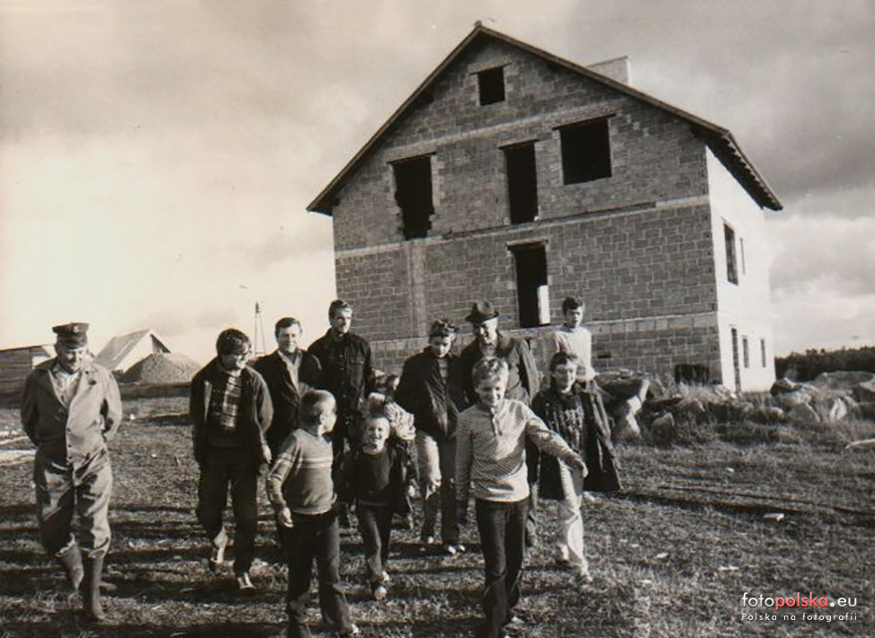 25 września 1988 , W Lipnicy, siedziby gminy, w województwie słupskim, budowany jest dom mieszkalny dla 11 rodzeństwa Śpiołków, których w ostatnich dwóch latach osierocili oboje rodzice, matka była nauczycielką, ojciec kierownikiem lecznicy dla zwierząt. Społeczeństwo gminy i nie tylko gminy, utworzyło samorzutnie komitet budowy domu dla sierot bo zasłużonych mieszkańców Lipnicy, opodatkowano się na ten cel. Pomocy udzieliły zarówno instancja partyjna i ZSL, jak również miejscowy ksiądz. Jest to przykład głęboko ludzkiej solidarności i dobroci. Dom jest już wybudowany w stanie surowym. W tym roku położone będą jeszcze tynki, a w roku przyszłym być może pod koniec lata rodzeństwo Śpiołków wprowadzi się do swojego domu. Warto dodać, że dzieci radzą sobie dobrze, w tym również z nauką, najstarszy Sławomir dostał się ostatnio jako prymus do Akademii Medycznej w Bydgoszczy. Na zdjęciu: rodzeństwo Śpiołków na tle swojego przyszłego domu, wśród nich znajduje się sekretarz w organizacji partyjnej w gminie oraz pracownicy nadleśnictwa.Skomentuj zdjęcie