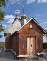 19 października 2019 , Nienowice, cerkiew Ofiarowania Przenajświętszej Bogurodzicy - Elewacja frontowa.Skomentuj zdjęcie |