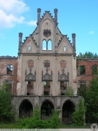 Pałac Schaffgotschów więcej zdjęć (297) Architekt: Carl Johann Bogislaw Lüdecke Atrakcja turystyczna Zbudowano: 1783, 1864 Dawniej: Schloss Z zachowanych informacji źródłowych wynika, że Kopice w 1360 r. były siedzibą rodu von Borsnitz. Kiedy dokładnie powstała miejscowość i w jakich okolicznościach stała się własnością rycerską trudno ustalić. Ród von Borsnitz należał do starej szlachty śląskiej, a jego przedstawiciele byli blisko związani z Piastami brzeskimi, opolskimi oraz oleśnickimi. Niemniej znanym i możnym rodem byli kolejni właściciele Kopic (od 1450 r.) von Beesowie. Od pierwszej połowy XVI w. wieś należała do von Neckernów, po których majątek przejęła rodzina Heymann von Rosenthal. Na początku XVIII w. dobra kupił Gotfryd von Spaetgen. Pomimo dwóch małżeństw posiadał on tylko córki, najmłodsza z nich Anna Katharina Hedwiga wyszła za mąż za Josefa Alberta von Francken-Sierstorpff i wniosła mu w posagu Kopice. Za panowania von Sierstorpffów, w latach 80-tych XVIII w. w Kopicach przebudowano istniejący pałac w stylu klasycystycznym. Trudno określić kiedy w wiosce powstała pierwsza rezydencja i przez kogo została zbudowana. Pałac w klasycystycznej formie stworzonej przez architekta Jana Rudolpha przetrwał niecały wiek. W 1859 r. dobra nabył hrabia Hans Ulrich Gotthard von Schaffgotsch, małżonek Joanny Gryszczyk, przybranej córki Karola Godulli. W latach 1868-97 na ich zlecenie według projektów Carla Johanna Lüdeckego i Karla Heidenreicha przebudowano rezydencję w stylu neogotyckim. W rękach rodu von Schaffgotsch majątek pozostał do 1945 r. Po wojnie na bazie znacjonalizowanego folwarku stworzono Państwowe Gospodarstwo Rolne. Pałac przetrwał działania wojenne bez większych zniszczeń, niestety brakowało mu dobrego opiekuna. Zabytek systematycznie okradano z cenniejszych elementów, a ślady zacierano za pomocą pożarów, doprowadzając pałac do kompletnej ruiny. W 1990 r. za nieprawdopodobnie niską cenę pozostałości rezydencji Schaffgotschów wraz z parkiem zostały sprzedane prywatnemu inwestorowi. Właściciel ten przez kilkanaście lat nie podjął żadnych działań zabezpieczających ruinę przed całkowitą zagładą. Naciski władz konserwatorskich oraz procesy sądowe sprawiły, że w 2008 r. odsprzedał to co zostało z zabytku prywatnej firmie z Chorzowa. Nowy właściciel szybko rozpoczął prace renowacyjne, jednak po niecałym roku z różnych przyczyn roboty zostały wstrzymane, a dalszy los pałacu znowu jest bardzo niepewny. Teren wokół otoczony jest ogrodzeniem, nie ma możliwości zwiedzania zabytku. Ze względu na liczne akty wandalizmu oraz zagrożenie katastrofą budowlaną obiektu pilnuje firma ochroniarska. |