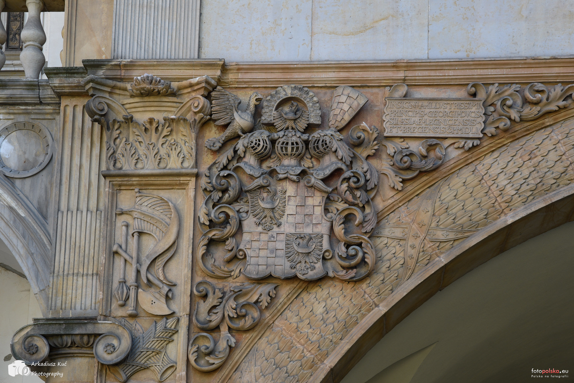 11 września 2021 , Zamek Piastów Śląskich w Brzegu - herb w lewej części bramy wjazdowej - widok z dziedzińca arkadowego.Skomentuj zdjęcie