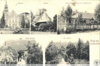 1914 , Pałac, kościół, piekarnia oraz szkoła katolicka i ewangelicka w Woskowicach Małych. |