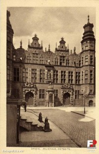 * dwa wielkie rustykowane portale, zwieńczone kartuszami z herbami Gdańska, podtrzymywanymi przez lwy