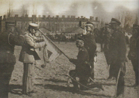 21 marca 1921 , 1 Pułk Szwoleżerów. Marszałek J. Piłsudski w asyście gen. dyw. Jędrzejewskiego D-cy O.K. II dekoruje w Chełmie Lubelskim sztandar Krzyżem V. M. V Kl.Skomentuj zdjęcie