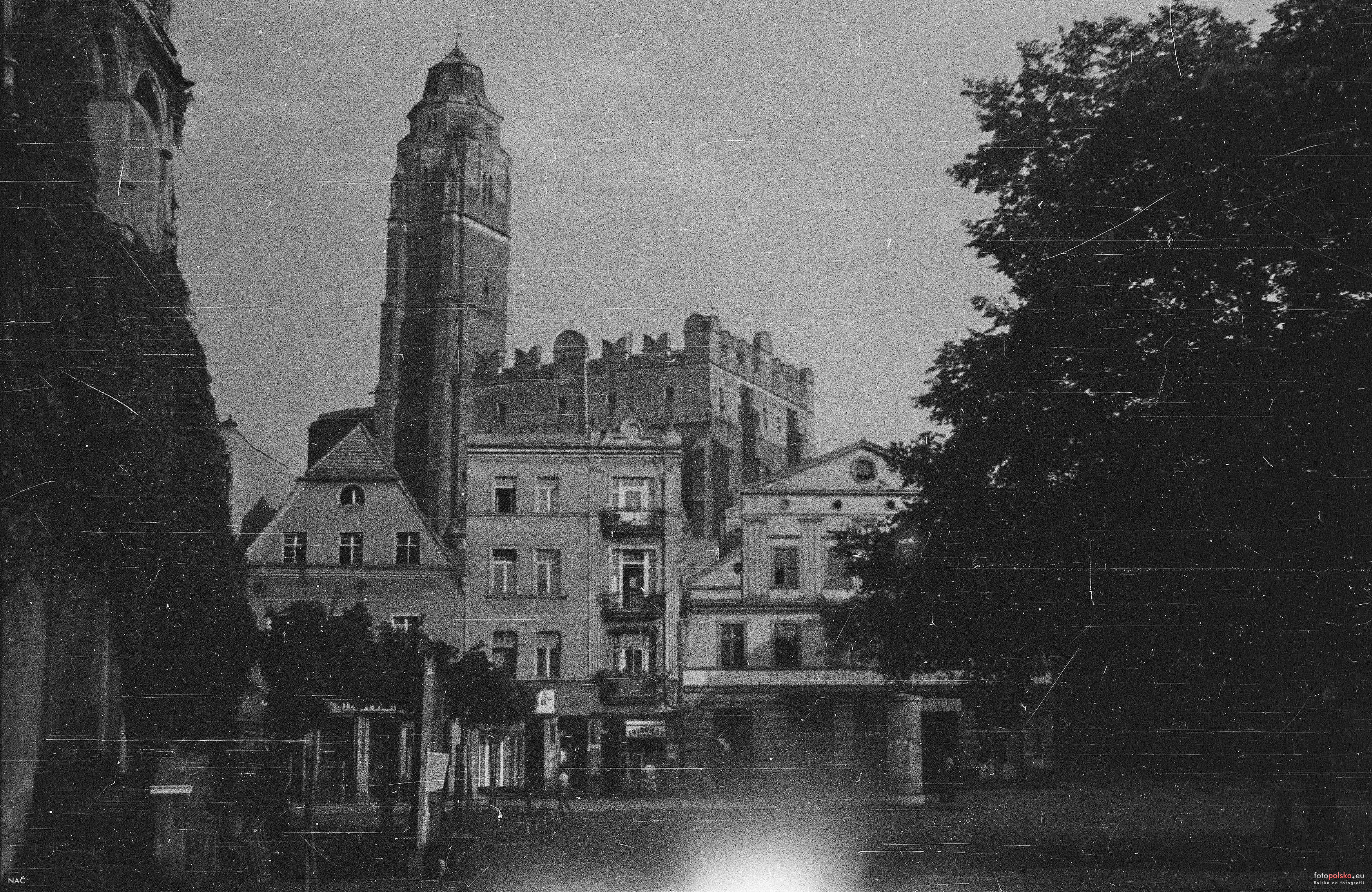 Lata 1947-1950 , Widok a Rynku na kościół św. Jana Ewangelisty.Skomentuj zdjęcie
