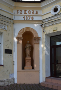 26 czerwca 2021 , Budynek szkoły z 1870 z figurą św. Nepomucena.Skomentuj zdjęcie