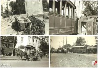 październik 1939 , Warszawskie tramwaje. Daros: 1. Puławska na wysokości kościoła św. Michała |