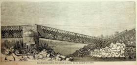 1866 , Dawny most kolejowy nad Odrą, 23 czerwca 1866 roku, podczas wojny prusko-austriackiej wysadzony przez żołnierzy pruskich.Skomentuj zdjęcie