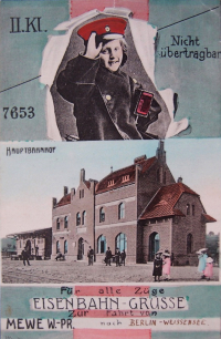 Lata 1900-1908 , Widokówka z dworcem kolejowym.Skomentuj zdjęcie |