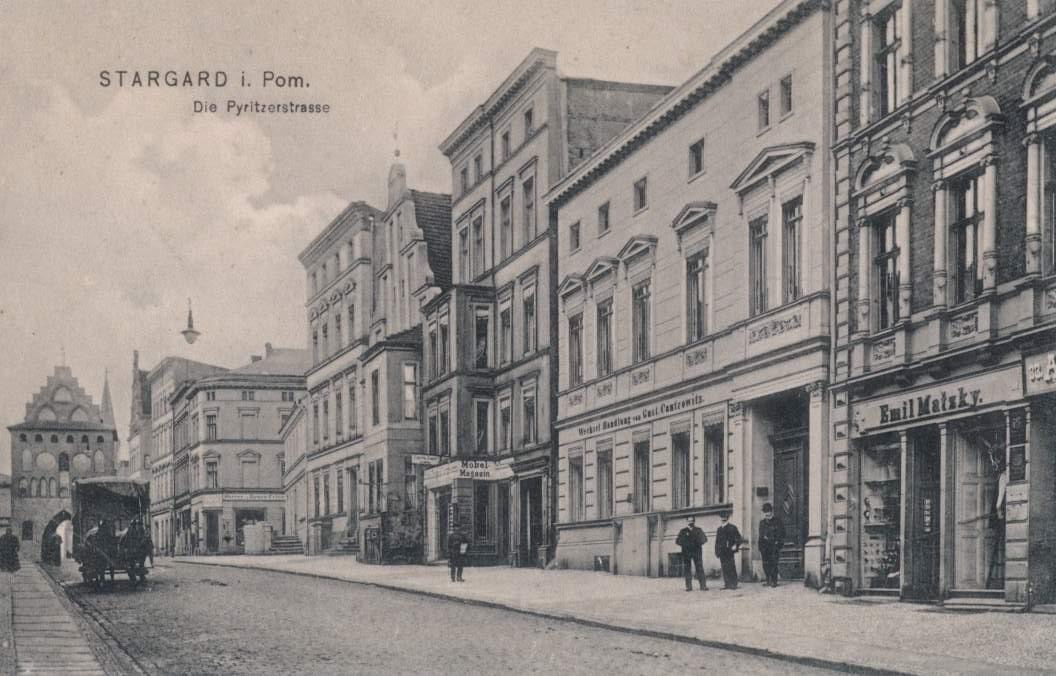 Lata 1900-1920 , Pyritzerstrasse, czyli dzisiejsza Mieszka I w stronę bramy Pyrzyckiej,Skomentuj zdjęcie |
