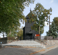 1 pobranie 456 odsłon 6 średnia ocen Poprzednie i następne zdjęcia cracusiac Obiekty widoczne na zdjęciu Kościół św. Mateusza Apostoła więcej zdjęć (8) Zbudowano: 1639 Zabytek: 63/663 z 29.06.1960 Wybudowany w 1639 r. z fundacji Aleksandra Głębockiego, archidiakona gnieźnieńskiego, i Magdaleny z Krzyckich Głębockiej, właścicielki wsi. Gruntownie restaurowanyt w latach osiemdziesiątych XX w. W 1992 r. Ministerstwo Kultury i Sztuki przyznało parafii nagrodę w konkursie na najlepszego użytkownika i opiekuna zabytkowego obiektu drewnianego. Konstrukcji zrębowej, oszalowany. Orientowany. Jednonawowy, z węższym, zamkniętym trójbocznie prezbiterium, do którego od strony północnej przylega zakrystia. Przy zachodniej ścianie nawy niska wieża z przybudówką od południa. Nawę i prezbiterium przykrywa wspólny dach kryty gontami, tworzący przy prezbiterium wydatny okap. Na kalenicy wieżyczka na sygnaturkę. Na wieży dach czterospadowy, kryty gontami. Wewnątrz strop płaski. Wczesnobarokowe wyposażenie wnętrza z 1 poł. XVII w. Trzy ołtarze; w głównym rzeźby śś. Łukasza i Marka oraz obraz przedstawiający patrona świątyni. Na belce tęczowej krucyfiks i rzeźby Matki Boskiej, św. Jana i św. Magdaleny. Tablica erekcyjna kościoła z 1639 r. Na zewnętrznej, wschodniej ścianie prezbiterium barokowy krucyfiks. |