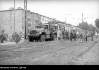 1949 , Pogotowie Miejskich Zakładów Komunikacyjnych na Marymonckiej. W tle nr 61 i 63Skomentuj zdjęcie