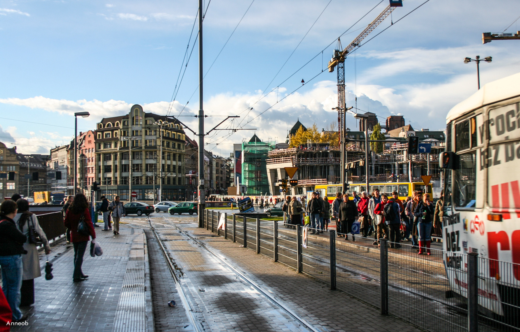 19 października 2007 , Ul. Oławska. Przystanek tramwajowy. Dalej powstaje Justin Center przy Krawieckiej. Po lewej, Urząd Statystyczny.Skomentuj zdjęcie |