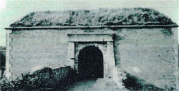 Lata 1989-1991 , Twierdza Modlin - brama w stylu staroegipskim prawdopodobnie według projektu P. Krasińskiego. (Zdjęcie pochodzi z pisma "Spotkania z Zabytkami" nr 11 (69) 1992)Skomentuj zdjęcie