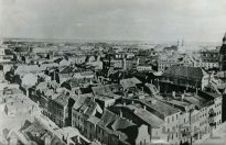 1932 , Stare Miasto na wschód od Starego Rynku, poniżej fasady kamienic wzdłuż południowej strony ul. Woźnej (z lewej) i fragment wschodniej pierzei Starego Rynku, około 1932 roku. Autor/Twórca: R.S. Ulatowski.