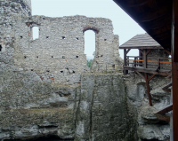 0 pobrań 449 odsłon 6 średnia ocen Poprzednie i następne zdjęcia Marek W Obiekty widoczne na zdjęciu Zamek Ogrodzieniec więcej zdjęć (467) Atrakcja turystyczna Zbudowano: XIV-XV w. Dawniej: Zamek Bonerów Zabytek: A/771/67 z 17.06.1967 Zamek Ogrodzieniec – ruiny średniowiecznego zamku leżącego w Jurze Krakowsko-Częstochowskiej wzniesionego w XIV-XV wieku przez ród Włodków Sulimczyków, później przebudowywanego. Zamek leży na najwyższym wzniesieniu Wyżyny Krakowsko-Częstochowskiej – Górze Zamkowej wznoszącej się na 515,5 m n.p.m. Ruiny leżą na „Szlaku Orlich Gniazd”; są udostępnione do zwiedzania. Ze względu na swoją nazwę, większość turystów błędnie twierdzi, iż jest on położony w miejscowości Ogrodzieniec. Naprawdę znajduje się we wsi Podzamcze, około 2 km na wschód od Ogrodzieńca. Pierwsze umocnienia stanęły tu za panowania Bolesława Krzywoustego i przetrwały do 1241 roku, kiedy to najazd tatarski zrównał je z ziemią. Na ich miejscu w połowie XIV wieku zbudowano zamek gotycki – siedzibę rodu rycerskiego Włodków Sulimczyków. Warownia była doskonale wkomponowana w teren: z trzech stron osłaniały ją wysokie skały, a obwód zamykał kamienny mur, wjazd prowadził wąską szczeliną między skałami. W 1470 r. zamek oraz przyległe dobra ziemskie kupili od Sulimów majętni mieszczanie krakowscy, Ibram i Piotr Salomonowie. Następnie od Salomonowiczów dobra Ogrodzienieckie przeszły na własność Jana Feliksa Rzeszowskiego proboszcza przemyskiego i kanonika krakowskiego z Przybyszówki. Właścicielami zamku byli w owym czasie również bracia Jana – Andrzej i Stanisław Rzeszowscy. Kolejnymi właścicielami zostali Pileccy, następnie Chełmińscy. W 1523 r. Zamek Ogrodzieniecki kupił Jan Boner, burgrabia, żupnik krakowski. Po śmierci Jana Bonera zamek objął jego bratanek Seweryn Boner i w latach 1530-1545 zbudował renesansowy zamek na miejscu dawnej warowni średniowiecznej. Następnie w 1562 r. zamek przeszedł w posiadanie Jana Firleja, marszałka wielkiego koronnego, jako męża Zofii, córki Seweryna Bonera. W 1587 r. zamek został zdobyty przez wojska arcyksięcia Maksymiliana, pretendenta do tronu polskiego, a w 1655 r. został częściowo spalony przez wojska szwedzkie, które stacjonowały w nim prawie dwa lata, rujnując znaczną część zabudowań. Kolejnym właścicielem zamku został w 1669 r. Stanisław Warszycki, kasztelan krakowski. Zamek ogrodzieniecki za jego panowania został częściowo odbudowany po zniszczeniach dokonanych przez Szwedów. Około 1695 r. zamek przeszedł w ręce Męcińskich. Następnie w 1702 r. znacznie ucierpiał w czasie pożaru wznieconego przez wojska szwedzkie Karola XII. Pożar strawił wówczas ponad połowę zamku. Praktycznie nie podjęto już jego odbudowy. Zamek około 1784 r. od rodziny Męcińskich odkupił Tomasz Jakliński, lecz nie dbając o jego stan techniczny, doprowadził do całkowitej ruiny. Ostatni mieszkańcy opuścili zrujnowaną warownię około 1810 roku. Kolejnym właścicielem Ogrodzieńca był Ludwik Kozłowski. Ten zupełnie nie liczył się z zabytkową wartością budowli, niszcząc jej mury w celu pozyskania budulca i sprzedając zamkowe wyposażenie Żydom. Ostatnim właścicielem warowni została pochodząca z pobliskiego zaścianka rodzina Wołczyńskich. Po wojnie obiekt znacjonalizowano. Prace konserwatorskie, zmierzające do zachowania zamczyska w formie trwałej ruiny i udostępnienia go dla zwiedzających, rozpoczęto w 1949, a ukończono w 1973 roku. Zdaniem niektórych badaczy zjawisk paranormalnych Zamek Ogrodzieniec jest miejscem nawiedzonym, gnieżdżą się tu siły mroczne i potężne. Słynny Czarny Pies z Ogrodzieńca pojawia się niekiedy nocami, biegnąc po murach i wokoło ruin zamku. Wedle relacji osób, które miały okazję widzieć owo widmo, jest to czarny pies, wielkością znacznie przekraczający psa, nawet bardzo dużego, jego oczy płoną, a biegnąc ciągnie za sobą ciężki łańcuch. Zjawa ma ponoć być duszą kasztelana krakowskiego Stanisława Warszyckiego. Co ciekawe – kasztelan straszy także niedaleko ruin zamku w Dankowie jako jeździec bez głowy. W najniższej kondygnacji kurzej stopy zachowały się do dnia dzisiejszego fragmenty renesansowych fresków przedstawiających lilie. Na sąsiednim z zamkiem ryneczku w Podzamczu znajduje się kapliczka, która została wybudowana z elementów zamkowych (portal, ślimacznice, gzyms). W jej wnętrzu znajdują się oryginalne elementy z kaplicy zamkowej w baszcie bramnej – zwornik sklepienia, kula armatnia, która miała wpaść do zamku w czasie potopu szwedzkiego oraz renesansowa figura Matki Boskiej. Figura ta niestety została zniszczona przez miejscowych, którzy w ludowym stylu pomalowali ją farbą olejną. Tym samym dziś nie można dopatrzeć się w niej prawdziwego piękna jakie posiadała. W 1973 roku zamek Ogrodzieniec posłużył jako część plenerów zdjęciowych do serialu Janosik. W 1980 r. kręcono na zamku film "Rycerz" w reżyserii Lecha Majewskiego. W 1984 r. heavymetalowy zespół Iron Maiden nagrał na zamku wstawkę filmową, która została użyta w filmie Live After Death w części Behind The Iron Curtain. Materiał został wykorzystany przy utworze Hallowed Be Thy Name. W 2001 r. w ruinach kręcono zdjęcia do Zemsty w reżyserii A. Wajdy. Do zamku dobudowano duże fragmenty dekoracji, które nie zostały usunięte po zakończeniu zdjęć. |
