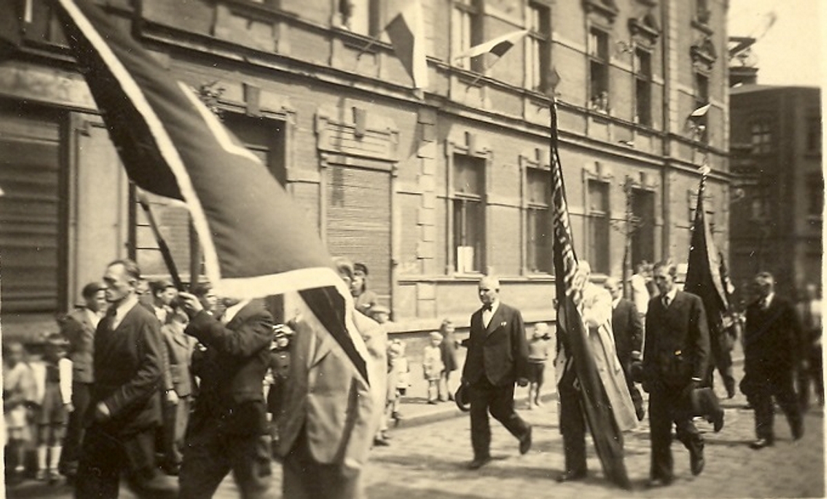 Lata 1930-1939 , Pochód ulicą 16 Lipca w Wielkich Hajdukach.Skomentuj zdjęcie