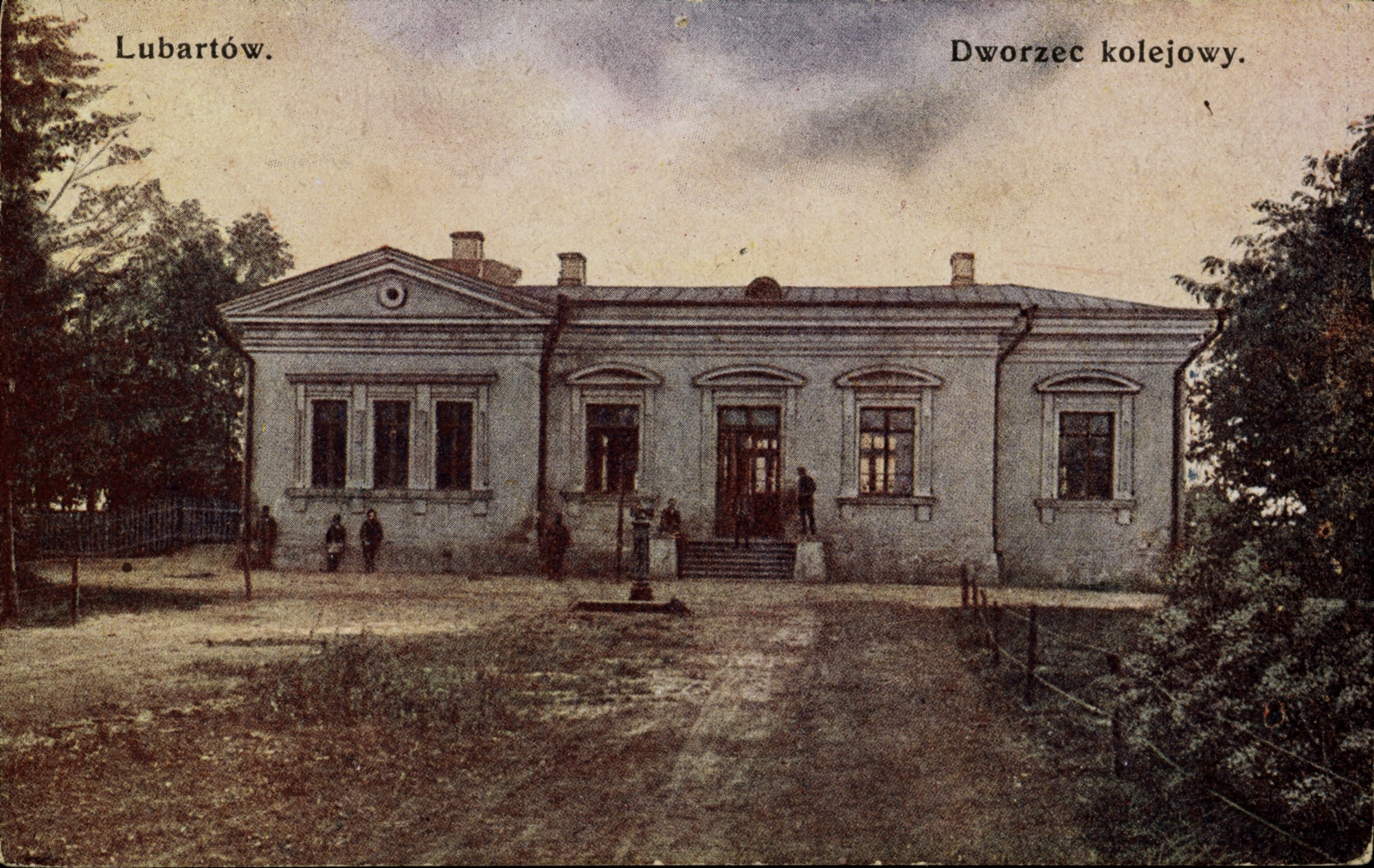 Lata 1910-1920 , Dworzec kolejowy w Lubartowie - widok od strony ul. Kolejowej. Na placu przed dworcem obecnie znajduje się plac manewrowy autobusów PKS.Skomentuj zdjęcie |