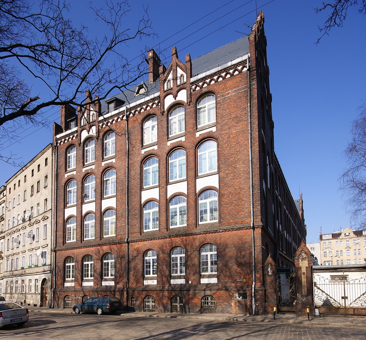 2 pobrania 975 odsłon 5.37 średnia ocen Poprzednie i następne zdjęcia zuf Obiekty widoczne na zdjęciu ul. Trzebnicka więcej zdjęć (566) Dawniej: Trebnitzer Strasse Ulica Trzebnicka we Wrocławiu – jedna z arterii wylotowych, prowadzących od Starego Miasta na północ, w kierunku Trzebnicy. Zaczyna się na placu św. Macieja, a kończy na mostach Trzebnickich przez Starą Odrę. Przebiega przez osiedle Kleczków (część dawnego Przedmieścia Odrzańskiego). Przedłużeniem ulicy Trzebnickiej za mostami Trzebnickimi jest ul. Żmigrodzka, przecinająca Karłowice i Poświętne. Długość ulicy wynosi 1,1 km; w połowie długości, przy pl. Powstańców Wielkopolskich, przecina ją wiadukt kolejowy. Południowy odcinek jezdni ulicy Trzebnickiej (do pl. Powstańców Wielkopolskich) jest stosunkowo wąski (po jednym pasie ruchu w obu kierunkach, bez tramwaju); odcinek północny jest szerszy i mieści także tory tramwajowe. W przeszłości część dzisiejszej ulicy Trzebnickiej (od pl. Powstańców Wielkopolskich do mostów Trzebnickich) stanowiła fragment Szosy Trzebnickiej (niem. Trebnitzer Chausee). Dawna rogatka miejska (Trebnitzer Barriere) zlokalizowana była w pobliżu skrzyżowania z ul. Ołbińską. Po roku 1868, w związku z budową linii kolejowej Prawego Brzegu Odry i korekcie sieci ulicznej (związanej także z wytyczonym w 1873 na dawnym Polu Maciejowym – Mathiasfeld – placem św. Macieja) przebieg nowo utworzonej Trebnitzerstraße przybrał współczesny kształt ulicy Trzebnickiej. Wybudowane wzdłuż ulicy budynki w większości powstały przed rokiem 1910 i podczas oblężenia Festung Breslau w 1945 prawie wszystkie przetrwały w stopniu, pozwalającym ich odbudowę; jest to jedna z nielicznych ulic miasta, których stuletnia zabudowa zachowała się w tak dużym stopniu do XXI wieku. Prócz kamienic mieszkalnych – w większości 5- i 6-kondygnacyjnych, często ze zlokalizowanymi na parterze lub w suterenie sklepami i małymi zakładami usługowymi – wzdłuż ulicy Trzebnickiej wybudowano m.in. w latach 1894-1895 gmach przytułku Fundacji Claasseena (wg projektu Richarda Plüddemanna, pod numerem 25-27, pomiędzy ul. św. Wincentego a Ołbińską, dziś szpital MSW), szkołę (1905-1908, projekt R. Plüddemanna i Ch. Cabanisa, pod numerem 42-44, przy skrzyżowaniu z ul. Dębickiego i z ul. Kleczkowską, dziś Kolegium Nauczycielskie), a także gazownię miejską (nr 35, projekt i budowa – rok 1881 i następne, dziś Zakład Energetyczny) i jej budynek administracyjny (nr 33, rok 1938, dziś urząd skarbowy dzielnicy Psie Pole). Źródło: Autorzy: Licencja: CC-BY-SA 3.0 Szkoła Podstawowa nr 74 im. Prymasa Tysiąclecia więcej zdjęć (16) Dawniej: Knaben-Volksschule Zespół szkół więcej zdjęć (11) Architekci: Karl Klimm, Richard Plüddemann, Charlot Cabanis Zbudowano: 1900/1908 Dawniej: Kletschkauer Schule, VIII LO 91948-1986) Autorzy: Richard Plüddemann, Karl Klimm, Charlot Cabanis. Budowa w dwu etapach (1900-1902, 1905-1908). Pierwszy budynek szkolny oddany do użytku 1.04.1902, drugi etap to przebudowa sali gimnastycznej oraz budowa drugiego budynku szkolnego. |