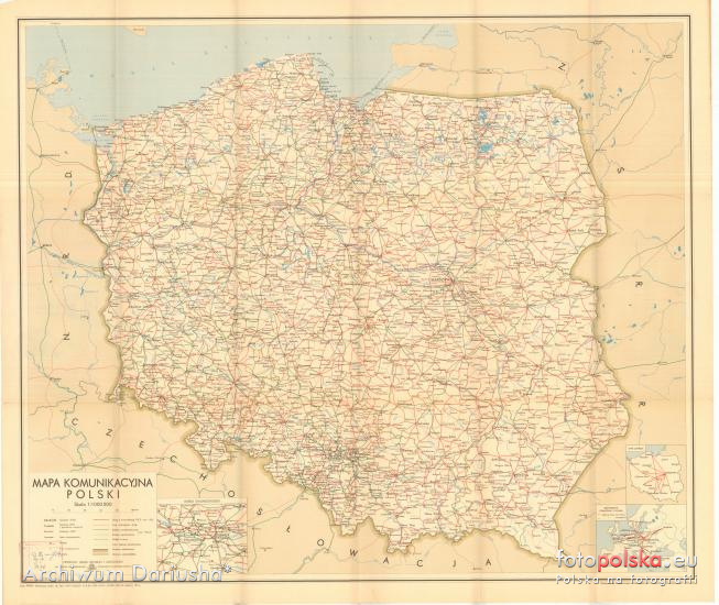 1956 , Mapa Komunikacyjna Polski- Centralny Urząd Geodezji i Kartografii.Rok 1956, Okręg Stalinogrodzki w ramce, wskazuje na wydrukowanie tej mapy jeszcze przed "Polskim Październikiem 1956", kiedy to przywrócono nazwę Katowice.Mapa w bardzo dobrym stanie przeleżała gdzieś 65 lat!Skomentuj zdjęcie