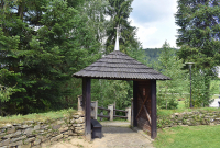 2 pobrania 384 odsłony 6 średnia ocen Poprzednie i następne zdjęcia piotr brzezina Obiekty widoczne na zdjęciu Cerkiew św. Dymitra więcej zdjęć (29) Zbudowano: 1764 Cerkiew św. Dymitra w Czarnej została zbudowana w 1764 r., przekształcona w 1. poł. XIX w (m.in. wydłużono prezbiterium), remontowana w 1930 i w latach 90. XX w. Jest to cerkiew łemkowska, typ północno-zachodni, wariant starszy, orientowana, drewniana, konstrukcji zrębowej. Trójdzielna: wydłużone prezbiterium, szersza nawa i babiniec na planach kwadratów. We wschodniej, dobudowanej części prezbiterium zakrystia. Wieża konstrukcji słupowo-ramowej o pochyłych ścianach, z lekko nadwieszoną izbicą, przy niej od zachodu przedsionek. Słupy wieży obejmują babiniec. Ściany obite gontem, izbica wieży szalowana pionowym deskowaniem, dachy blaszane. Dach nad prezbiterium kalenicowy, trójpołaciowy, nad nawą namiotowy, dwukrotnie łamany, z dodatkową kalenicą, która łączy go ze ścianą wieży, nad wieżą namiotowy. Nad wszystkimi częściami jednolite hełmy baniaste (większy nad wieżą, pozostałe mniejsze) z pseudolatarniami i żelaznymi krzyżami. W nawie i prezbiterium kopuły namiotowe, nad nawa wzmocniona ściągiem krzyżowym. Nad babińcem strop płaski. Polichromia ornamentalna i architektoniczna z 1. poł. XIX w. Kompletny, barokowy ikonostas x XVIII w. Na północnej ścianie ołtarzyk z ikoną Hodigitria z poprzedniego ikonostasu z XVII w. Na klejmach postacie proroków ze zwojami pism, wśród nich, u dołu, św. Anna i św. Joachim. Obecnie budynek służy jako kościół filialny parafii rzymskokatolickiej w Brunarach pod tym samym wezwaniem. Teren przy cerkwi otoczony murkiem kamiennym z bramką. Powyżej cerkwi na czynnym cmentarzu kilka dawnych nagrobków kamiennych. (opis pochodzi z wikipedii ) |