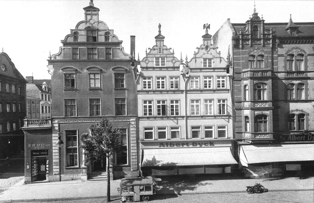 Lata 1922-1930 , Dwie bliźniacze kamieniczki w stylu manieryzmu niderlandzkiego, wybudowane w 1599 roku. Posiadają nieco odmienny rysunek szczytów, budowane były dla jednego właściciela. Należą do znacznej grupy tego typu kamienic z przełomu XVI i XVII stulecia. Obie elewacje, wraz z sąsiednim Domem Królów, zostaną zrekonstruowane.Skomentuj zdjęcie