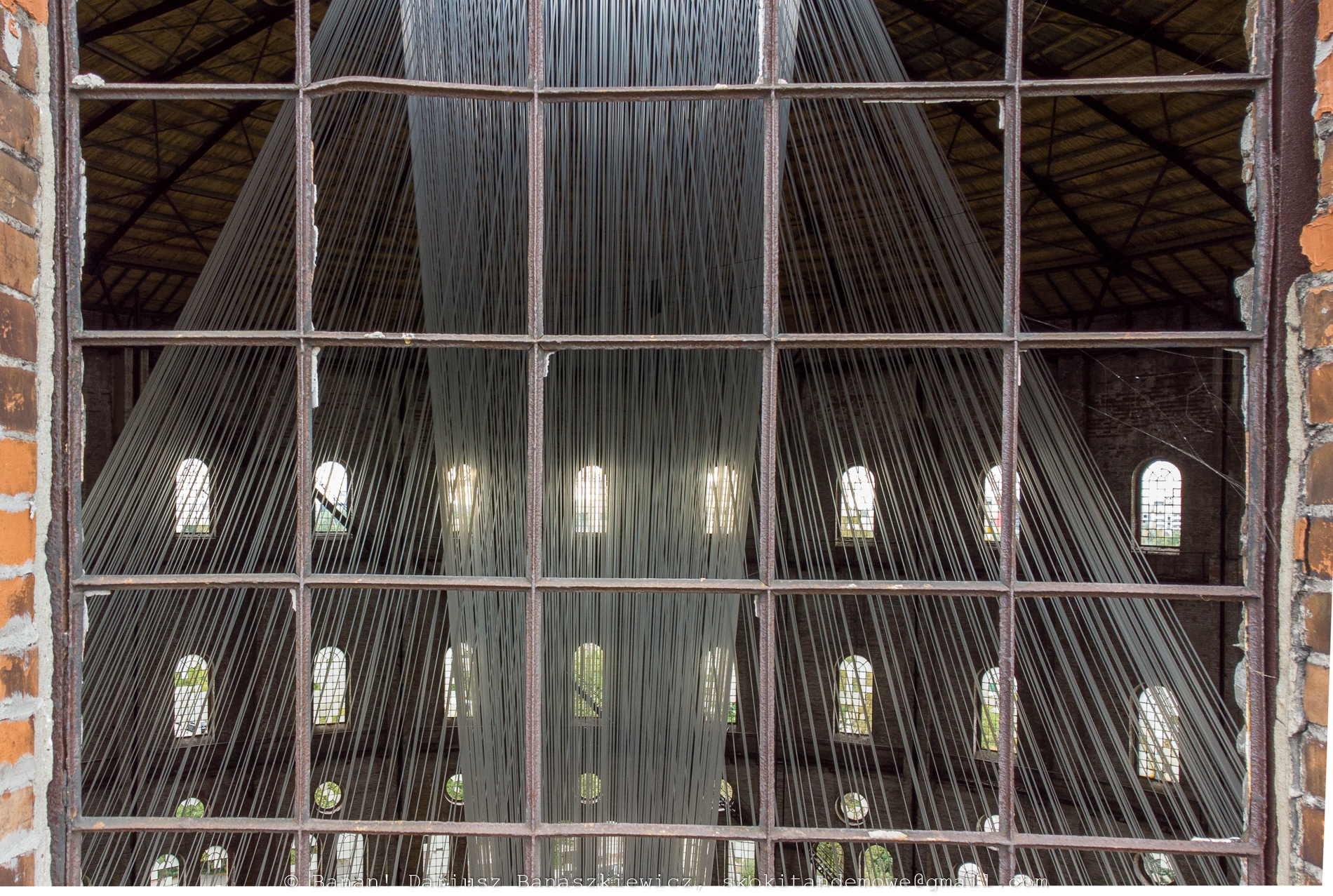 14 września 2021 , Budynek zbiornika większego. Widok przez okno na instalację usztywniającą konstrukcję budowli (prawdopodobnie).Skomentuj zdjęcie