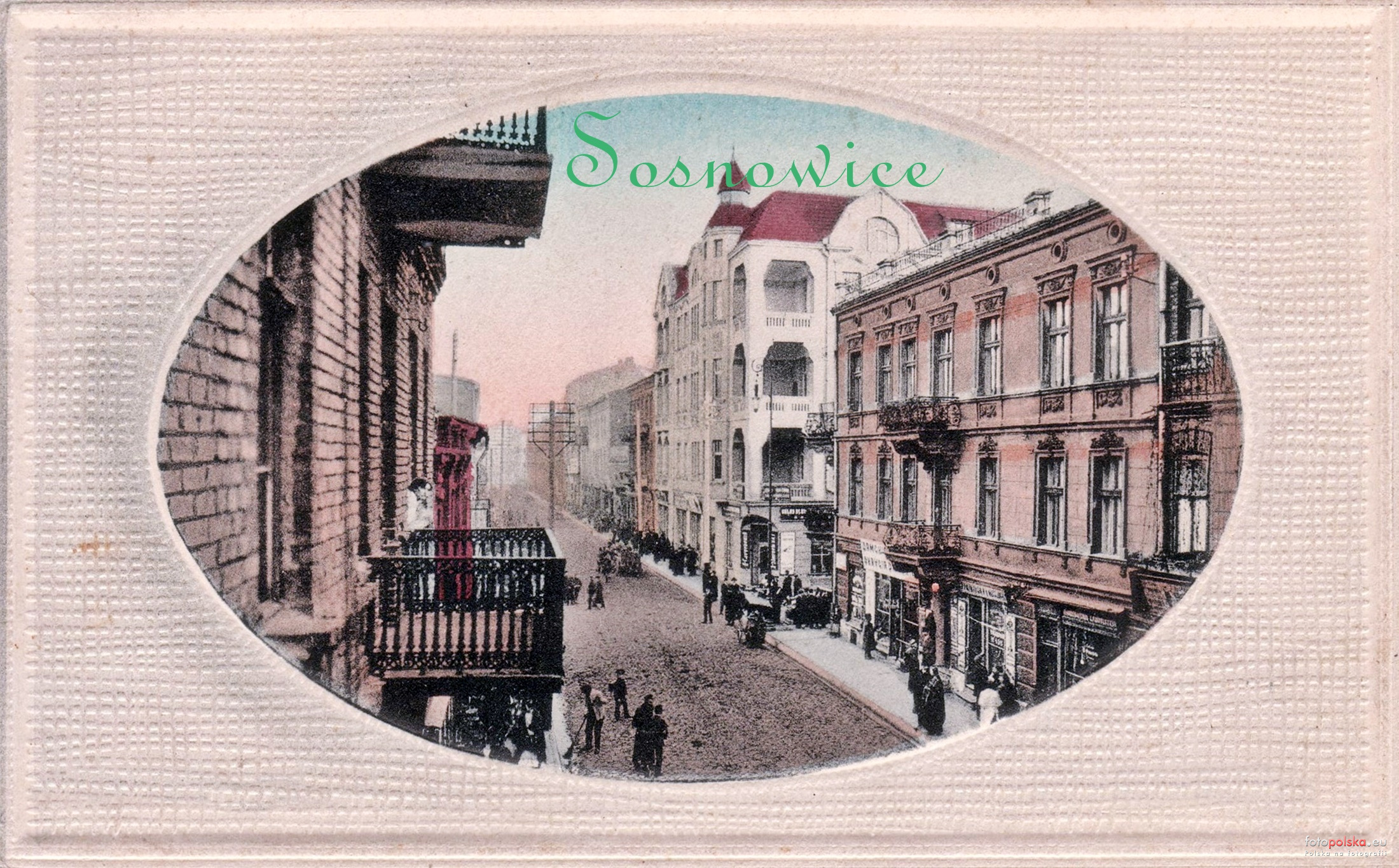 Lata 1906-1908 , Widokówka. Perspektywa ul. Modrzejowskiej. Widoczne po prawej nr 15-23, centralnie narożny budynek przy ul. Targowej 12, po lewej fragment nr 16.Skomentuj zdjęcie