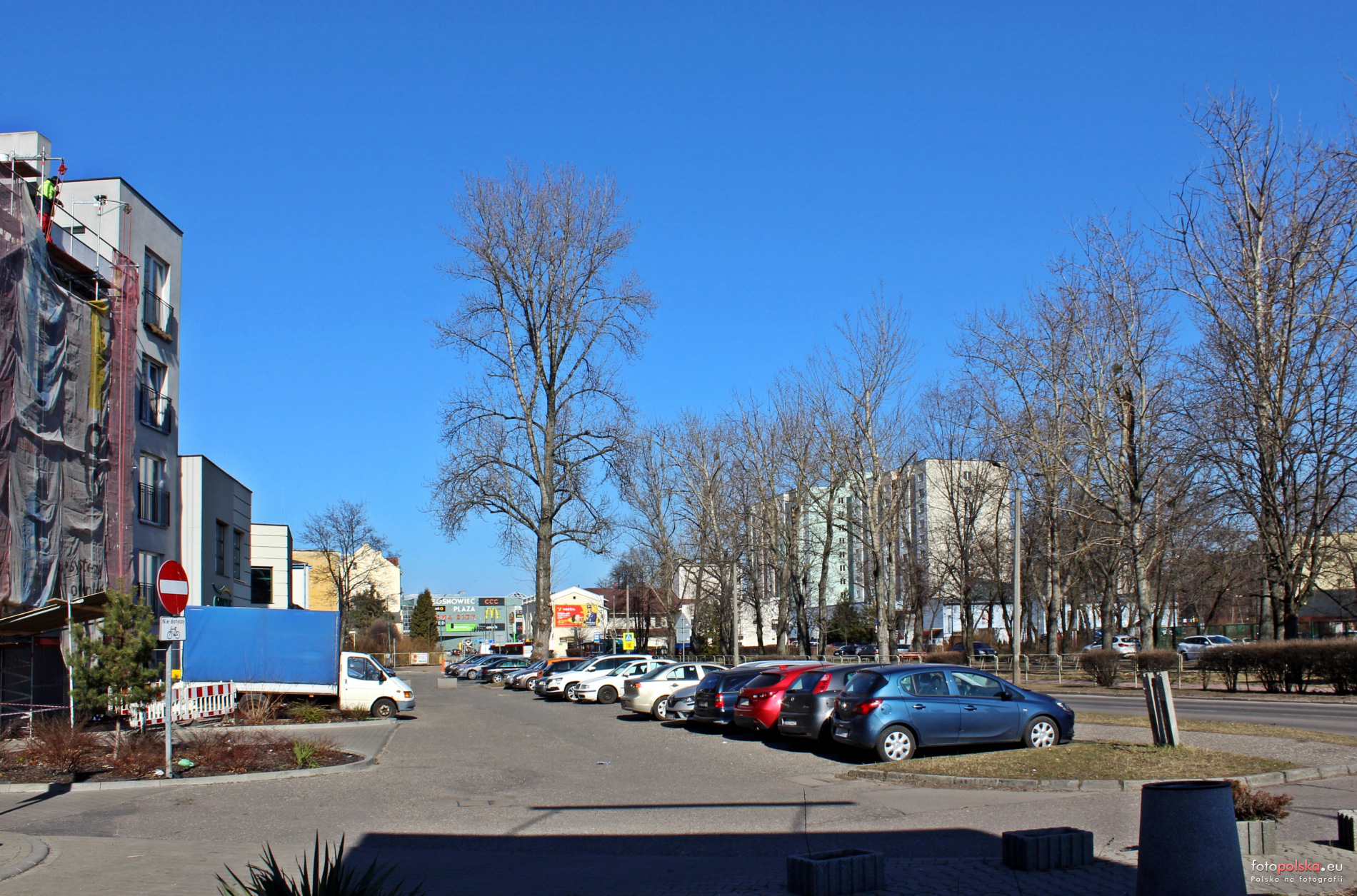 10 marca 2022 , Perspektywa ul. Tetralnej w kierunku pólnocnym, na pierwszym planie widoczny parking, po lewej budynek (w ostatnim etapie budowy) przy ul. Towarowej 21, w tle - prokuratura, CH "Plaza" i teatr.Skomentuj zdjęcie |