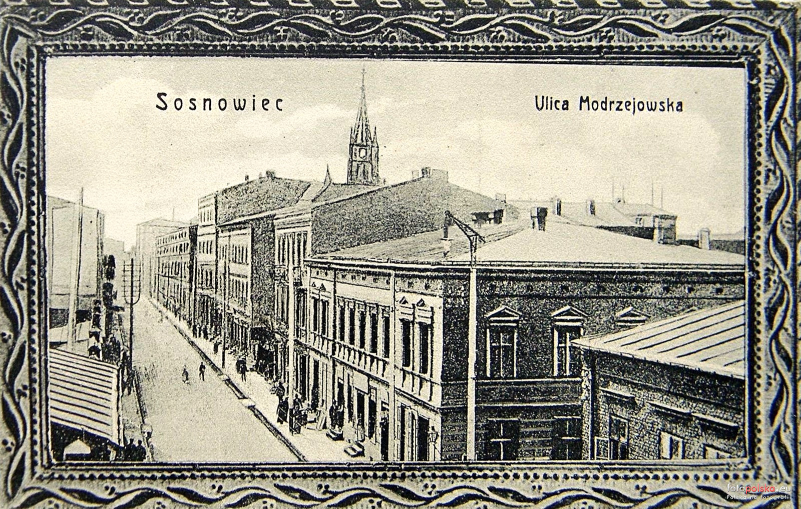 Lata 1906-1910 , Widokówka - fragment zabudowy ul. Modrzejowskiej.Skomentuj zdjęcie |