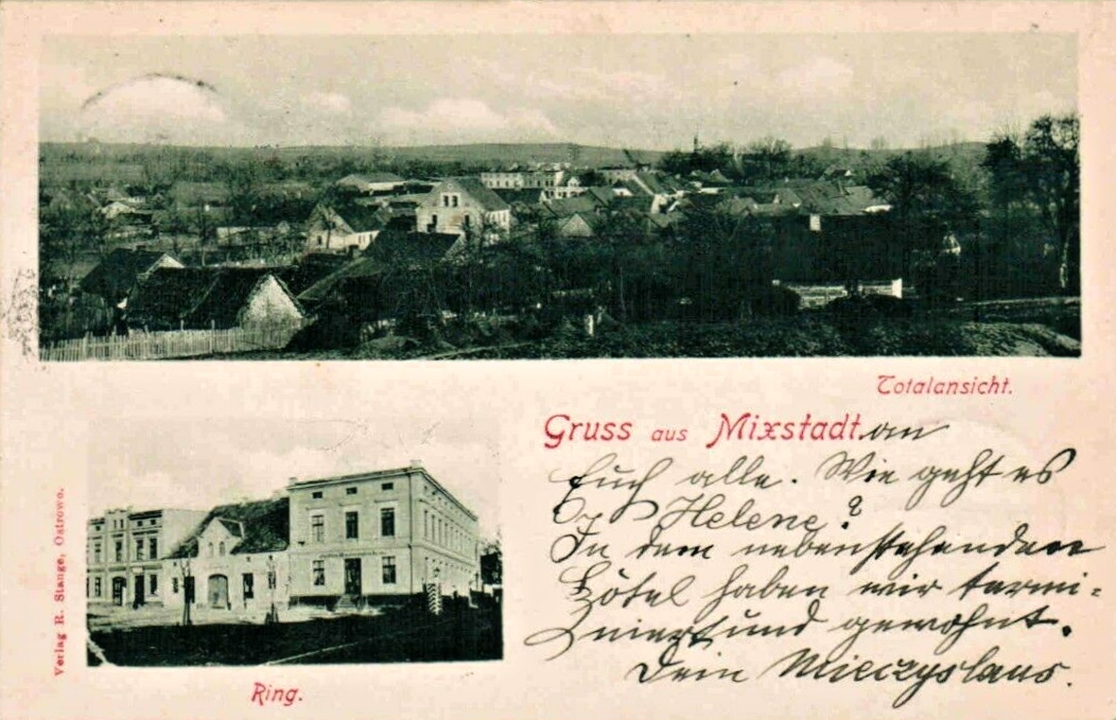 1904 , Mikstat, u góry panorama miasta, na dole wschodnia strona Rynku.Skomentuj zdjęcie |