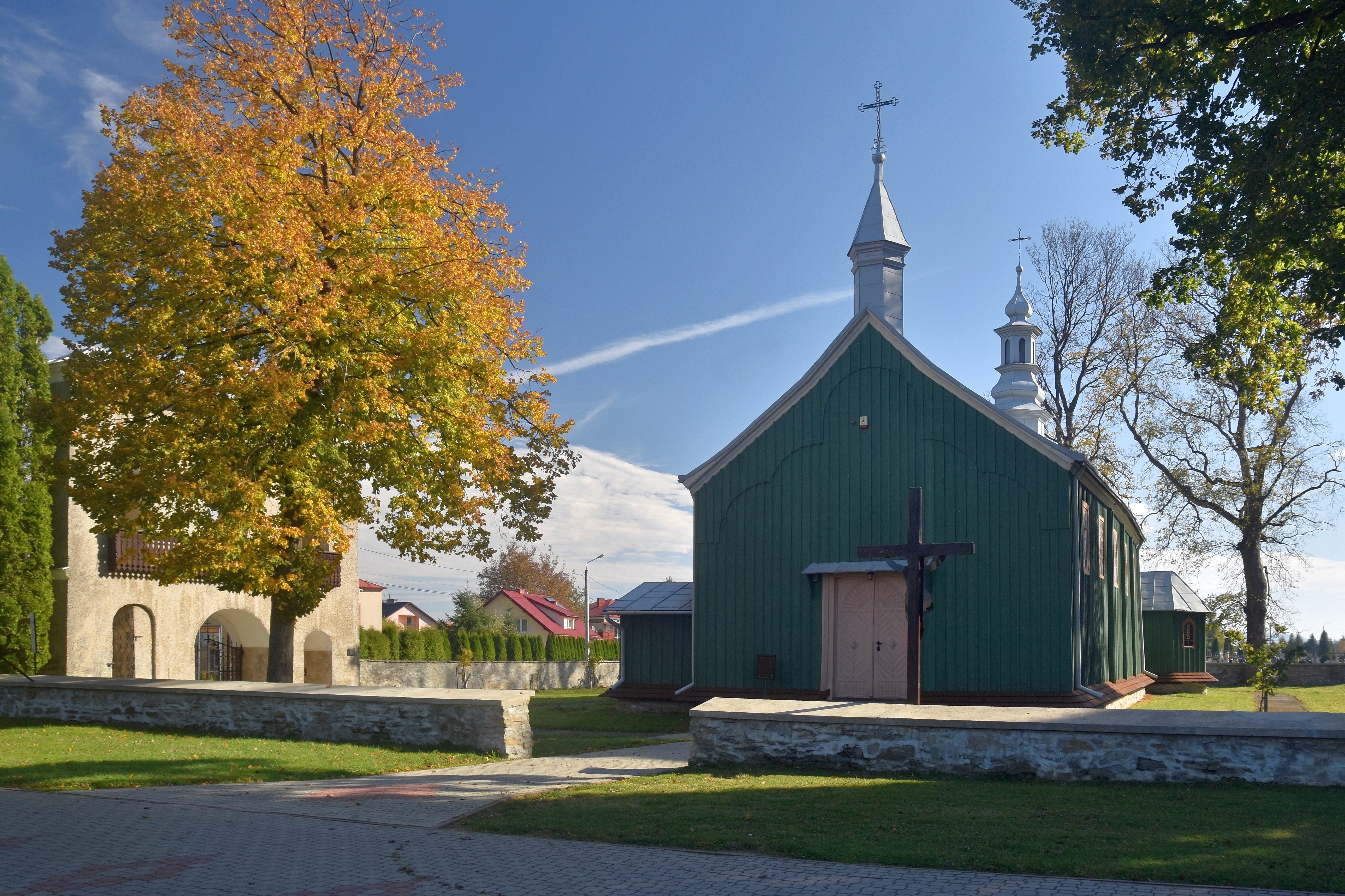 15 października 2019 , Besko, kościół Podwyższenia Krzyża Świętego - Elewacja frontowaSkomentuj zdjęcie |