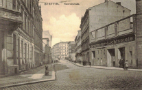 Lata 1915-1917 , Ulica Ofiar Oświęcimia w Szczecinie. Dawna Heinrichstraße. Po prawej stronie Gruenhofer Lichtspiele ("Kino Bolineckie") pod nr 16. Dalej kamienice nr 17-19, skrzyżowanie z nieistniejącym odcinkiem ulicy 1 Maja (Hindenburgstraße), kamienica nr 21 i działka przy Św. Jana Kantego 1. Jeszcze dalej narożna kamienica nr 24, za nią nr 25.Skomentuj zdjęcie |
