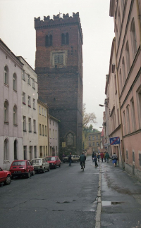 Krzywa wieża więcej zdjęć (98) Atrakcja turystyczna Zbudowano: XIV w. Zabytek: 41/A/00 z 01.12.2000 Krzywa wieża w Ząbkowicach Śląskich - średniowieczna krzywa wieża w Ząbkowicach Śląskich, która jest jedną z ciekawostek turystycznych Dolnego Śląska. Wysokość tej wieży wynosi 34 m, a jej obecne odchylenie od pionu 2,14 m. Początki krzywej wieży nie są dziś znane z powodu braku źródeł pisanych. Kilku niemieckich badaczy twierdziło, że wieża jest pozostałością przedlokacyjnego zamku (tzw. "Bergfried"). Zamek ten miał zostać wzniesiony przez książąt świdnickich, a zniszczony przez wojska walczące z czeskim królem Jerzym z Podiebradów[potrzebne źródło]. O wiarygodności tej hipotezy świadczy to, że dolne partie murów (do wysokości 10 m) zbudowane są z kamienia i zaprawy wapiennej. Niezwykle duża, przekraczająca 4 metry, grubość murów tej części wieży także zdaje się wskazywać na jej pierwotnie obronny charakter. Potwierdzają to także badania archeologiczne przeprowadzone w 1999 i 2000, w wyniku których przy ul. Długiej, na wysokości Krzywej Wieży, odsłonięto fragmenty muru kamienno-ceglanego. Po przesunięciu murów miejskich, w XIV wieku powiększył się obszar zabudowany miasta. Z dawnej baszty postanowiono zrobić dzwonnicę kościoła parafialnego pw. św. Anny. Zakończenie budowy nastąpiło prawdopodobnie w 1413 roku. Pod koniec XVI w., dokładnie w 1598 wieża pochyliła się. Prawdopodobnie miały na to wpływ ruchy tektoniczne w pobliskim Bardzie lub też zwiększony ciężar nadbudowanej wieży. W 1858, kiedy całe miasto objął wielki pożar, wieża uległa znacznemu zniszczeniu, szczególnie w części szczytowej, i władze pruskie zamierzały ją rozebrać. Na szczęście władze miejskie były innego zdania i po długotrwałych zabiegach obiekt odbudowano. Dawne zwieńczenie w postaci blaszanego hełmu zastąpiono attyką w kształcie jaskółczych ogonów. Krzywa wieża jest dostępna dla zwiedzających, a klucz do niej znajduje się w Ząbkowickiej Izbie Pamiątek położonej nieopodal, przy ul. Krzywej 1. W grudniu 2007 zakończył się gruntowny remont zewnętrznych ścian wieży. Co 15 minut rozlega się dźwięk zegara wieżowego ul. Wojciecha, św. więcej zdjęć (482) Dawniej: Kirchstraße |