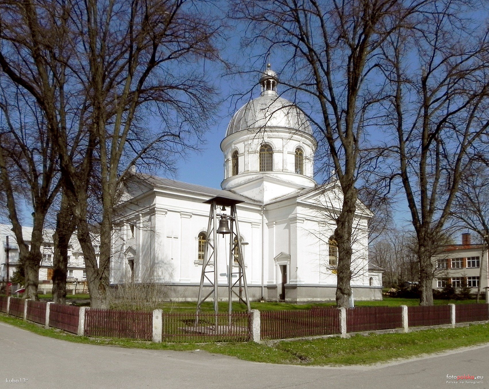 Kościół św. Józefa Robotnika więcej zdjęć (20) Zbudowano: 1910 Dawniej: Biała Cerkiew Dawna cerkiew greckokatolicka, położona w centrum wsi, którą zaprojektował wybitny architekt ukraiński Wasilij Nahirnyj. Cerkiew została oddana do użytku w 1910 r. i poświęcona przez biskupa Konstantego Czechowicza. Ogromny, murowany obiekt wybudowany w neoklasycystycznym stylu z wielką kopułą przypomina nieco bazylikę św. Piotra w Rzymie. Świątynia ma wymiary: długość ok. 33 m, szerokość ok. 24 m, wysokość ok. 30 m, na szczycie świątyni znajduje się krzyż o wysokości ponad 2 m. Wewnętrzna średnica kopuły wynosi 11 m. W czasie pierwszej wojny światowej obiekt doznał szereg zniszczeń. Gruntowna renowacja obiektu została zakończona w 1928 r, tak długi czas remontu świątyni sugeruje, że świątynia uległa w znacznym stopniu zniszczeniu na skutek działań wojennych. Jest największym takim obiektem sakralnym na terenie polskiej części Roztocza Wschodniego. W środku cztery cenne figury z XVIII w. przywiezione z Uchnowa, stojące w ołtarzu głównym. W bocznym ołtarzu od strony północnej znajduje się obraz Matki Boskiej z Dzieciątkiem, ikona z końca XVII wieku. Jeszcze do niedawna w świątyni znajdowały się dwie ikony namiestne z końca XVII w. Matki Boskiej z Dzieciątkiem i Jezusa Nauczającego. Zostały one wraz z ościeżnicami carskich wrót przeniesione na początku XX w. ze starej pochodzącej z 1638 r. drewnianej cerkwi i wstawione do ikonostasu w nowej murowanej świątyni. W ten sposób podkreślono ciągłość działania świątyń. Obecnie w obiekcie sakralnym znajduje się tylko ikona Matki Boskiej z Dzieciątkiem. Została ona odnowiona, jednak przy odnowie dostosowano jej kształt do nowego obramowania oraz usunięto liczne wota, m. in. zdobiące ją korale. Druga z ikon namiestnych, przedstawiająca Jezusa Nauczającego znajduje się w Muzeum Ikon w Łańcucie. Została ona odkupiona od prywatnego właściciela. Wcześniej toczyło się wieloletnie śledztwo, które miało wyjaśnić, w jaki sposób ikona opuściła obiekt w Werchracie i dostała się w prywatne ręce. Nie jest znany autorom los ościeżnic carskich wrót, pochodzących również z II połowy XVII w. W przedsionku znajdują się dwie kamienne kropielnice pochodzące z byłego klasztoru Bazylianów. Po prawej stronie nawy wmurowana jest tablica upamiętniająca działalność św. Brata Alberta. Obok świątyni znajduje się częściowo obrobiony kamień (wykonany w dawnym przysiółku Górniki), pozostałość po rozebranej pod koniec lat 40–tych dzwonnicy o trzech dzwonach. Pozostałe kamienie, na których posadowiona była konstrukcja dzwonnicy, są złożone obok nowo wybudowanego obiektu – Domu Oazowego. Na miejscu starej dzwonnicy postawiono nową (dzwon „Brat Albert”). Obiekt otoczony nowym drewnianym płotem wsparty na starych kamiennych słupach wykutych w warsztatach bruśnieńskich. Na placu przykościelnym nagrobek proboszcza greckokatolickiego Eugeniusza Chomińskiego (1867 – 1939). Na podstawie opracowania \"Werchrata - perła Roztocza\" - autorzy: Grzegorz Chmielowiec, Stanisław Wis, Marek Wiśniewski |