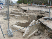 24 kwietnia 2022 , Ul. Północna na wysokości Pętli Tramwajowej. Remont torowiska i ulicy. Odkryto szczeliny przeciwlotnicze z okresu II wojny.Skomentuj zdjęcie |