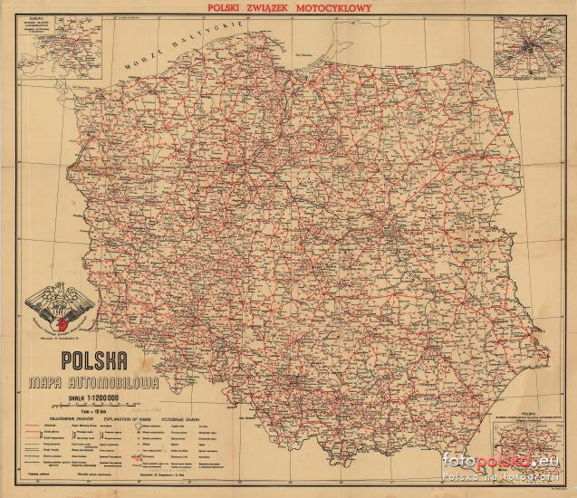 1946 , Mapa automobilowa Polski wydana przez Polski Związek Motocyklowy |