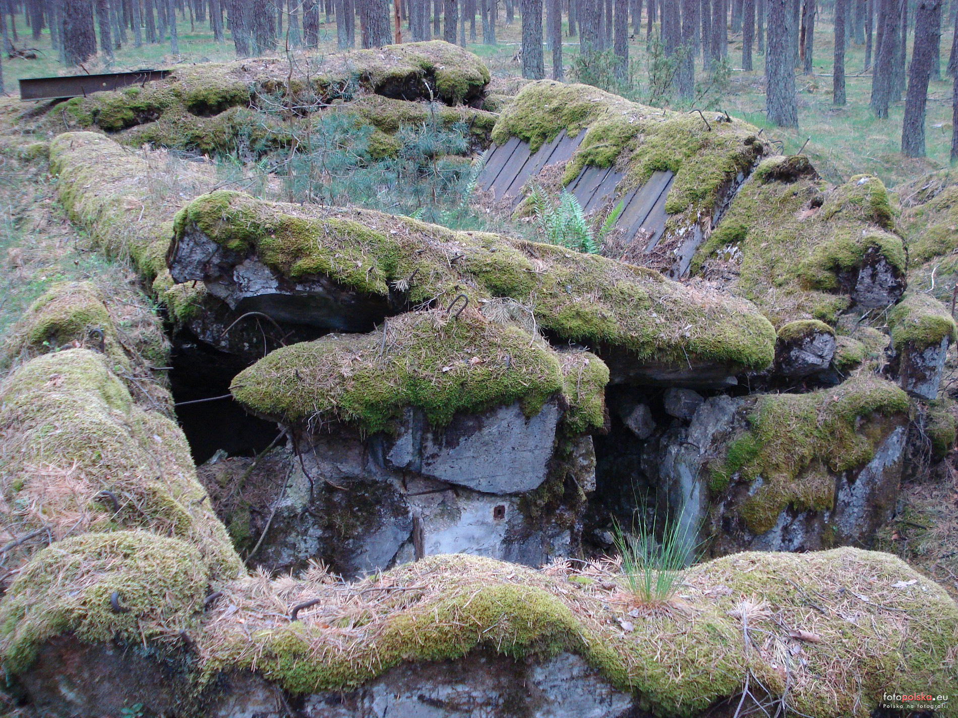 Jednosektorowy schron bojowy z drużyną wypadową (Büs. 8) więcej zdjęć (22) Atrakcja turystyczna Zbudowano: 1936 Schron bojowy z pomieszczeniem dla drużyny wypadowej Na skutek wybuchu płyta stropowa osunęła się do wnętrza obiektu tworząc malowniczą ruinę. Atrakcja turystyczna Zbudowano: 1936 Odcinek Büs. - Büssensee (jezioro Busino Duże) to odcinek fortyfikacji o mieszanym charakterze, ponieważ północne skrzydło obejmuje jezioro Busino Duże oraz drogi przecinające mokradła nad jeziorem, natomiast skrzydło południowe jest typowym odcinkiem leśnym. Cały odcinek obejmuje 10 schronów i liczy ok. 3 km, w tym 1 km zajmuje jezioro i bagna na północnym skrzydle. Szeroka przeszkoda wodna powodowała, że zrezygnowano tu z ułożenia zwykłego kabla telefonicznego. W zamian zastosowano sygnalizację optyczną pomiędzy schronami Büs. 11 i Büs. 12 po obu stronach bagien. Cały ten teren znajduje się w granicach poligonu lotniczego w Nadarzycach. Wzniesione tu schrony to standardowe obiekty o odporności C, wykonane w 1936 roku. Podczas podziału Pozycji Pomorskiej na odcinki dywizyjno-pułkowe cały odcinek Büs. włączono do odcinka F/b. W roku 1944 uznano, że las nie stanowi wystarczająco silnej przeszkody dla radzieckich czołgów i przed linią schronów wykopano rów przeciwpancerny. Wykopano także system okopów i rowów łączących, który towarzyszy schronom na południowym skrzydle, na styku z odcinkiem Dro.S. , lecz biegnąc na północ silnie wysuwa się na przedpole i osiąga brzeg jeziora Busino Małe około kilometra przed linią schronów i rowem p.panc. (na podst. przewodnika turystycznego "Fortyfikacje Wału Pomorskiego w okolicy Wałcza" autorstwa Marcina Dudka.) |
