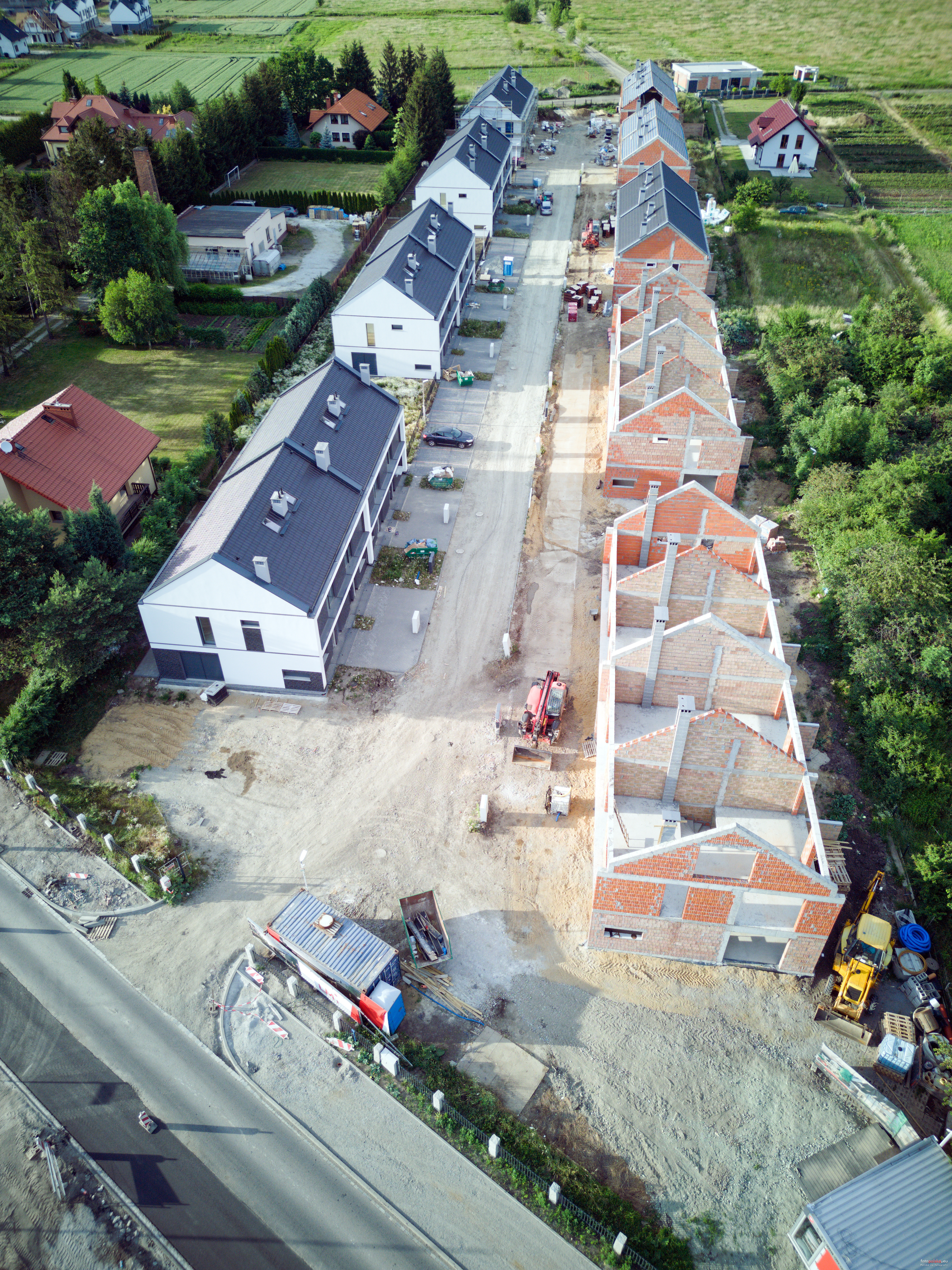 17 czerwca 2022 , Powstające osiedle przy ul. Wrocławskiej widziane od strony tejże ulicy. Pierwsze trzy budynki z lewej są gotowe i mają adresy 13-13e, ten za nimi to pewnie będzie 13f-13g. Podejrzewam, że pięć domów po prawej dostanie adresy 15-15i, ale trudno być tego pewnym.Skomentuj zdjęcie |