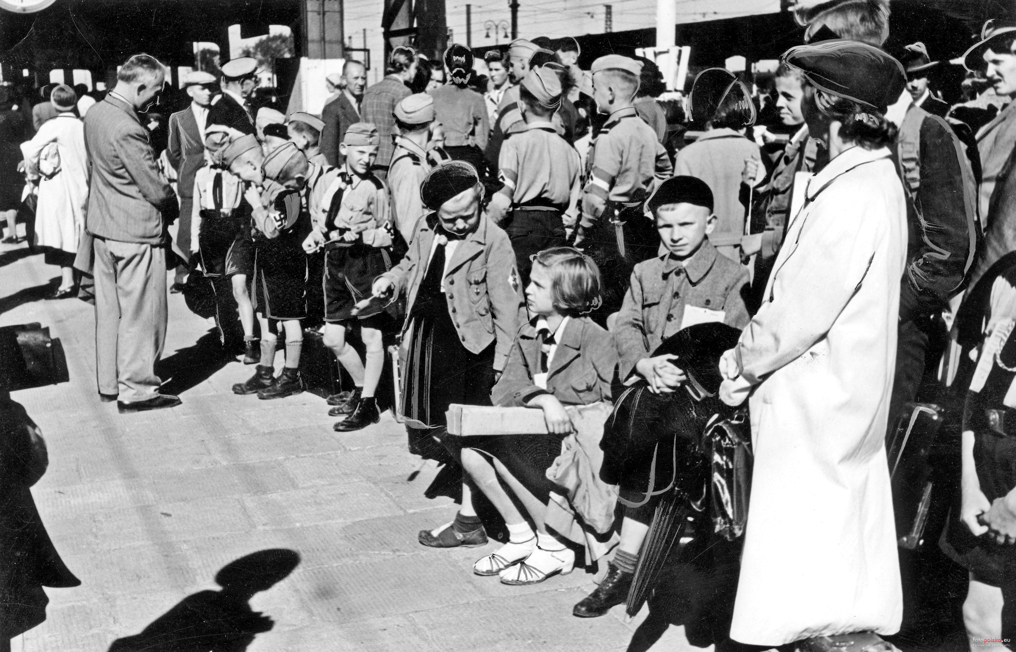 wrzesień 1941 , Jeden z peronów stacji kolejowej Warszawa Wschodnia. Widoczne m.in. niemieckie dzieci wyjeżdżające z Warszawy na kolonie do Rzeszy.Skomentuj zdjęcie