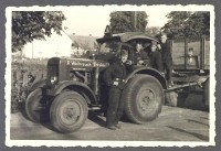 Lata 1939-1945 , Żołnierze Luftwaffe w strojach roboczych przy traktorze z Wrocławia.Skomentuj zdjęcie