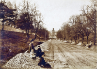 1912 , Perspektywa ul. Piłsudskiego w kierunku północnym. Widoczne (po lewej) ogrodzenie cmentarza, (centralnie) kościół.Skomentuj zdjęcie |