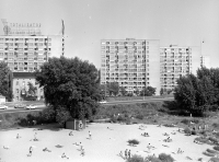 9 lipca 1972 , Fragment plaży przy moście Śląsko-Dąbrowskim, w tle widoczne bloki osiedla.Skomentuj zdjęcie