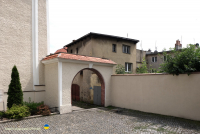 29 czerwca 2022 , Za bramą łączącą z kościołem Podwyższenia Krzyża Świętego widoczny dom przy Grunwaldzkiej 6 oraz sąsiednie.Skomentuj zdjęcie |