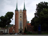 KOŚCIÓŁ (archikatedra) TRÓJCY ŚWIĘTEJ Oliwa, ul. Nowickiego 5 (do 1945 Klosterstraße, po 1945 Cystersów 15). Pierwotnie kościół klasztoru cystersów, wzniesiony pod koniec XII wieku, prawdopodobnie z cegły, na kamiennym fundamencie, jednonawowy, zamknięty absydą, z wieżyczką schodową. Wątki ceglane pierwotnego założenia zachowane są częściowo w murach obecnego prezbiterium. Rozbudowywany według zmieniających się koncepcji – przerywanych w 1. połowie XIII wieku najazdami Prusów i Krzyżaków – do rozmiarów romańskiej bazyliki z trójnawowym, sześcioprzęsłowym korpusem zachodnim, prezbiterium zapewne z bocznymi kaplicami i transeptem. Wśród zachowanych romańskich elementów w południowym szczycie transeptu wątek skośnie ułożonych cegieł (opus spicatum).