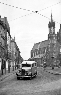 listopad 1938 , Fragment Linii A-B i Kościół Mariacki. Na pierwszym planie widoczna sanitarka Chevrolet 122, Krakowskiego Ochotniczego Towarzystwa Ratunkowego.Skomentuj zdjęcie |