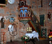 4 pobrania 2185 odsłon 5.33 średnia ocen Poprzednie i następne zdjęcia selene Obiekty widoczne na zdjęciu Wnętrza więcej zdjęć (6) Kościół Matki Boskiej Królowej Polski więcej zdjęć (30) Atrakcja turystyczna Zbudowano: XIV w. Dawniej: Evangelische Kirche in Eventin Zabytek: 293 Kościół w Iwięcinie powstał pod koniec XIV wieku z inicjatywy cystersów z klasztoru w Bukowie Morskim. Pierwotnie budynek miał 4 wieże, jednak kiedy w roku 1732 piorun zniszczył dwie z nich, odbudowano tylko jedną. Nadano jej pochylenie w kierunku zachodnim aby uchronić ją przed częstymi, silnymi wiatrami zachodnimi. Wieża i nawa kościoła były pokryte gontami dębowymi. W 1535 roku, w wyniku reformacji kościół przejęli protestanci. Od tego roku, do roku 1945 w kościele tym pracowało 20 pastorów, najdłużej zaś urząd swój pełnił pastor Mevius — ponad 50 lat. Barokowa tablica inskrypcyjna z roku 1899, odnowiona w roku 2001 zawiera wykaz 17 pastorów. Do roku 1945 pracowało jeszcze trzech pastorów, są to w kolejności: Karl Krüger (1929-1935), Kurt Koschnik (1936-1939), Heinrich Puttkammer (1940-1945). Po przeciwległej stronie zrobiono podobną tablicę z nazwiskami polskich proboszczów sprawujących swój urząd od roku 1945. Stary cmentarz, otoczony kamiennym wałem posiadał 3 bramy wejściowe. Każda z nich podlegała jednej z trzech podległych wsi - były to: Iwięcino, Wierciszewo i Belkowo. Ściśle przestrzegano, aby mieszkańcy korzystali wyłącznie z bramy, która do nich należy. Bramy Wierciszewa i Belkowa były znacznie szersze, ponieważ przy nich pastor odprawiał uroczystości pogrzebowe. W Iwięcinie natomiast odbywały się one w domach zmarłych. Każdą z bram zdobiły rzeźbione napisy: brama dla Belkowa: "Tu mors, eris porta coeli" (łac. O, śmierci - ty staniesz się bramą do nieba), brama dla Wierciszewa: "Gehet zu seinem Toren ein mit Danken" (niem. Przestępujcie Jego bramy z wdzięcznością), Napis na bramie dla Iwięcina, pochodzącej z 1725 roku, stał się z czasem nieczytelny. Na jednej ze ścian kościoła wisiało duże epitafium, wyrzeźbione przez pastora Zeidlera, który sprawował swój urząd w latach 1635-1676. W 1697 roku, za czasów pastora Malichiusa, wykonano na deskach stanowiących sufit kościoła malowidło przestawiające Sąd Ostateczny. W późniejszych latach zostało ono pokryte warstwą tynku. Odkryto je ponownie dopiero w roku 1908. Wtedy również przeniesiono ze strychu kościoła zabytkowy 12-ramienny lichtarz oraz korony znad ambony i chrzcielnicy. Na ścianie północnej znajduje się dekoracyjna, niedawno odrestaurowana tablica, prawdopodobnie z XVI/XVII wieku. W czasach protestanckich umieszczony był w niej portret Marcina Lutra. Ołtarz kościoła pochodzi z 1622 roku. Zawiera między innymi rzeźby przedstawiające Jezusa Dobrego Pasterza, Mojżesza z tablicami Dekalogu oraz scenę Ukrzyżowania. Na ścianie kościoła wisi obraz olejny przedstawiający właścicielkę majątku Rzepkowo Katarzynę Marię von Bulgrin. Najstarszy i najmniejszy dzwon w wieży kościoła pochodzi z 1417 roku. Organy wykonano w roku 1908. W 1998 roku byli niemieccy mieszkańcy wsi ufundowali pomnik ku czci wszystkich zmarłych mieszkańców tych ziem. Odprawiono uroczyste nabożeństwo z udziałem pastora kościoła ewangelickiego. W 2001 roku, kosztem ponad 80 tys. złotych została odnowiona zabytkowa ambona(architektura) z roku 1688. W roku 2008 kosztem około 45 tys. zł odrestaurowano zabytkowe, renesansowe ławy. Od roku 1960 kościół wraz z otoczeniem (drzewostan i trzy drewniane bramy w ogrodzeniu cmentarnym pochodzące z roku 1725, połowy XVIII i połowy XIX wieku) znajduje się w rejestrze zabytków (nr rej. 293 z dnia 27 września 1960 r.). Za: i |