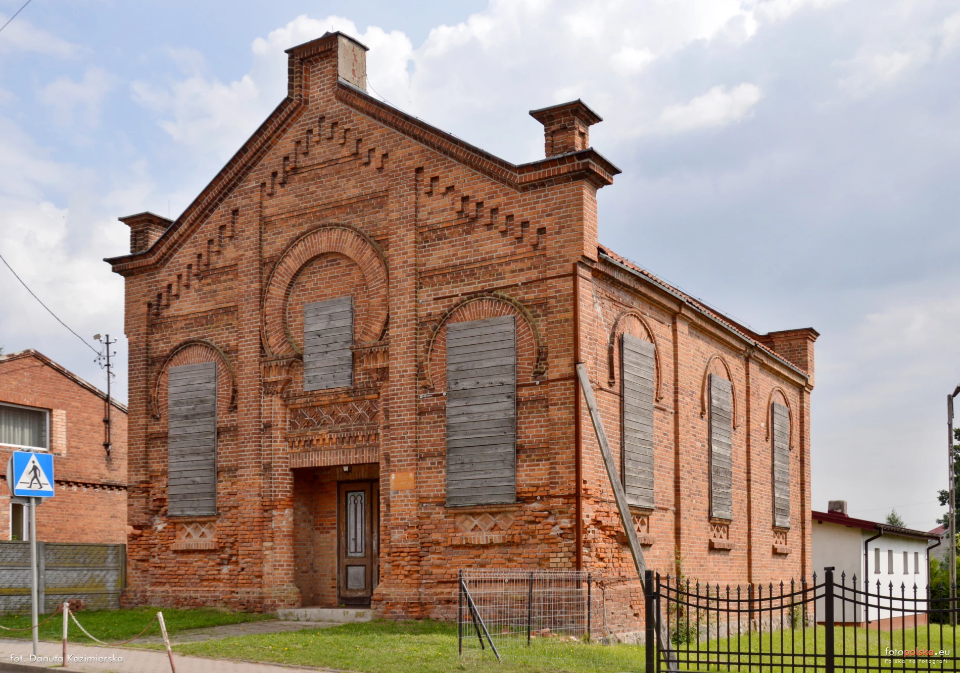 0 pobrań 249 odsłon 6 średnia ocen Poprzednie i następne zdjęcia da signa Obiekty widoczne na zdjęciu Synagoga więcej zdjęć (5) Zbudowano: 1875-1904 Zabytek: A 209 z 22.06.1980 Nowa synagoga w Radzanowie – znajduje się w https://pl.wiki..._m%C5%82awski)" Historia Murowana synagoga została wybudowana w latach https://pl.wikipedia.org/wiki/1875">1875-https://pl.wikipedia.org/wiki/1904">1904, na miejscu https://pl.wiki...a_w_Radzanowie">starszej drewnianej synagogi, w południowo-wschodnim narożniku rynku. Autorem projektu budynku był https://pl.wiki...wiki/Architekt">architekt powiatu mławskiego Zygmunt Kmita, któremu przypisuje się również projekt https://pl.wiki..._Bie%C5%BCuniu">synagogi w Bieżuniuhttps://pl.wiki...cite_note-:1-1">[1]. Synagoga została poważnie uszkodzona w czasie https://pl.wiki...iki/Po%C5%BCar">pożaru miasta w https://pl.wikipedia.org/wiki/1907">1907https://pl.wiki...ie#cite_note-2">[2]. Jej odnawianie trwało do https://pl.wikipedia.org/wiki/1914">1914. Podczas https://pl.wiki..._%C5%9Bwiatowa">II wojny światowej, w styczniu https://pl.wikipedia.org/wiki/1942">1942 miejscowi https://pl.wiki.../wiki/%C5%BByd">Żydzi deportowani zostali do getta w https://pl.wiki...iki/M%C5%82awa">Mławie, a synagoga została zdewastowana. Po wojnie w budynku synagogi mieścił się magazyn nawozów. Od 1986 do 2001 funkcjonowała w nim gminna https://pl.wiki...iki/Biblioteka">biblioteka. Obecnie budynek nie jest użytkowanyhttps://pl.wiki...cite_note-:0-3">[3]. Opis[edytuj | https://pl.wiki... | href=" kod] Budynek synagogi został wzniesiony z cegły na fundamencie z kamieni łączonych zaprawą wapienną i gliną. Jest to budowla https://pl.wikipedia.org/wiki/Nawa">jednonawowa na planie prostokąta (10,65 m na 14,50 m), o czterech ośmiobocznych słupach wspierających https://pl.wiki..._(budownictwo)">strop, a także trójosiowej https://pl.wiki...rg/wiki/Fasada">fasadzie od strony zachodniej. Synagoga jest https://pl.wiki...(architektura)">orientowana. W zachodniej części budynku znajduje się https://pl.wiki...Wiatro%C5%82ap">przedsionek, z którego prowadzi wejście do sali modlitewnej. Oryginalnym elementem zdobniczym synagogi są https://pl.wiki...uk_podkowiasty">podkowiaste łuki https://pl.wiki...iki/Mauretania">mauretańskie, nawiązujące do architektury starozakonnej z krajów Europy Zachodniej z XIX w. Stąd określenie styl mauretańskihttps://pl.wiki...ie#cite_note-4">[4]. We wnętrzu budynku zachowała się drewniana https://pl.wiki...iki/Balustrada">balustrada galerii dla kobiet (tzw. https://pl.wiki.../wiki/Babiniec">babiniec), a także stylizowane https://pl.wiki.../%C5%BByrandol">żyrandole i https://pl.wiki...g/wiki/Kinkiet">kinkietyhttps://pl.wiki...cite_note-:1-1">[1]https://pl.wiki...cite_note-:0-3">[3]. Synagoga jest wpisana do https://pl.wiki..._zabytk%C3%B3w">rejestru zabytków nieruchomych województwa mazowieckiego pl. Piłsudskiego więcej zdjęć (24) |