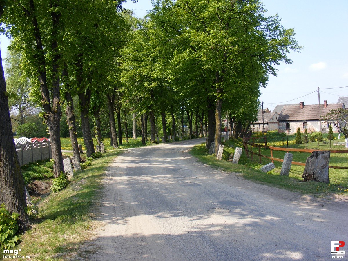 29 kwietnia 2011 , Prawie na całej długości, obie strony, głównej drogi wioski wytyczono granitowymi słupami. Prawdopodobnie wszystkie spięte były, u góry, stalowym kątownikiem (poręczą).
