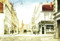 Lata 1910-1920 , Holzmarktstrasse (Łokietka) widok w kierunku poczty. Po prawej stronie widoczny fragment narożnej kamienicy przy Jägerstrasse 34 (Róg Płatnerzy, Łokietka)Skomentuj zdjęcie |